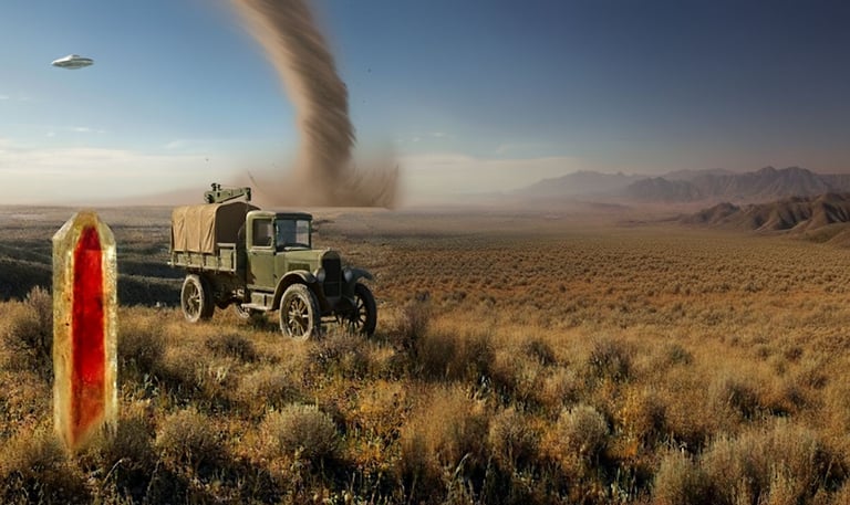 The Wild West is dying, but its secrets are bleeding out. In 1919, WWI war hero turned Geologist Mineralogist Jebidiah Tsavorite is traversing the rugged American West on a mission: to secure rare mineral specimens for the prestigious Peabody Natural History Museum. His journey across Colorado, Idaho, and Oregon unexpectedly leads him into a muddy mire where his dog, Jonkers, uncovers a shocking secret: a mysterious bipedal alien with purple eyes and a tail. A powerful, sibling-like bond instantly forms between the three as they continue their trek, only to repeatedly encounter a vicious gang targeting the region's wealth. Unbeknownst to most, a shadowy group of powerful oligarchs has established a hidden mountain base where they are building a weaponized, advanced army, funded entirely by their gold vault robberies. Their ultimate, sinister objective is nothing less than total control of the Americas.