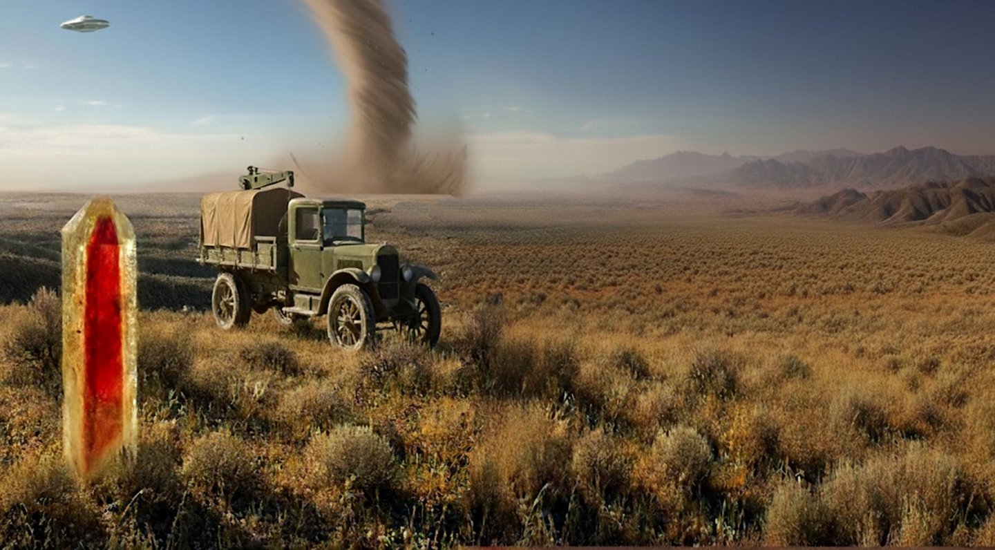 The Wild West is dying, but its secrets are bleeding out. In 1919, WWI war hero turned Geologist Mineralogist Jebidiah Tsavorite is traversing the rugged American West on a mission: to secure rare mineral specimens for the prestigious Peabody Natural History Museum. His journey across Colorado, Idaho, and Oregon unexpectedly leads him into a muddy mire where his dog, Jonkers, uncovers a shocking secret: a mysterious bipedal alien with purple eyes and a tail. A powerful, sibling-like bond instantly forms between the three as they continue their trek, only to repeatedly encounter a vicious gang targeting the region's wealth. Unbeknownst to most, a shadowy group of powerful oligarchs has established a hidden mountain base where they are building a weaponized, advanced army, funded entirely by their gold vault robberies. Their ultimate, sinister objective is nothing less than total control of the Americas.